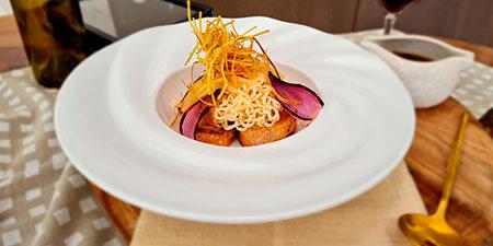 3. Para el montaje, servir sopa caliente, cubrir con queso, colocar encima crutones y servir.